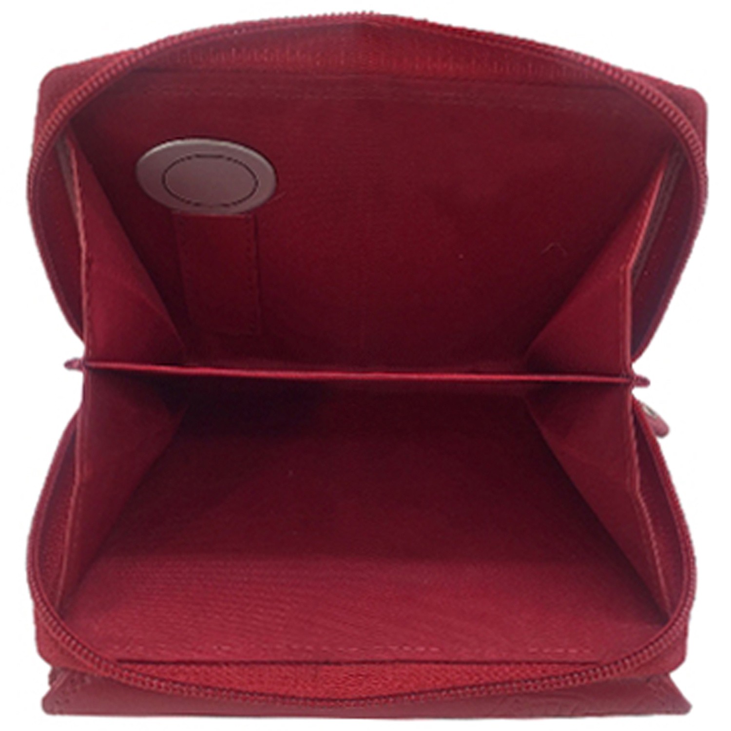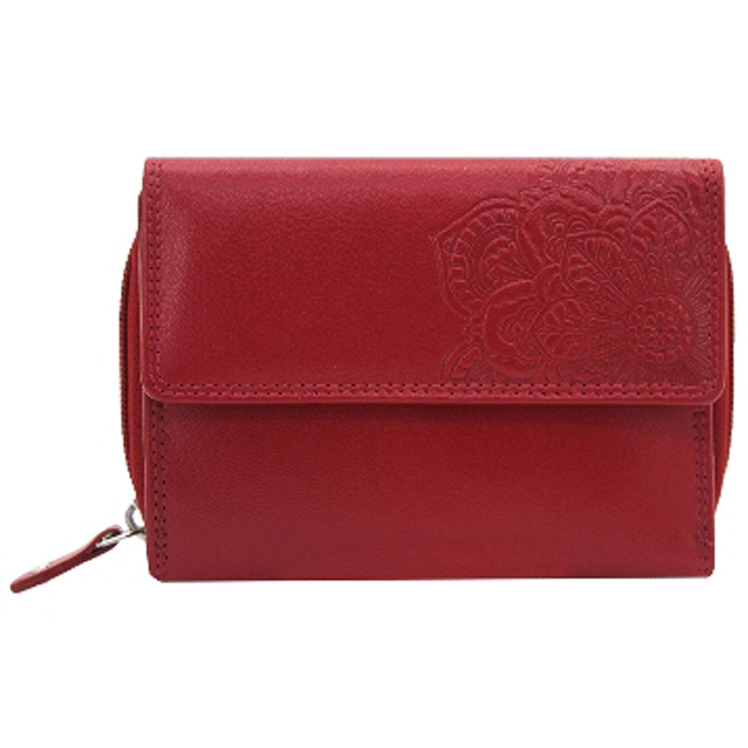 Geldbörse Mandala, Leder rot, 2 Scheinfächer, 1 großes, zweigeteiltes Reißverschluss-Hartgeldfach mit einem Schlüsselsteckfach, 3 große Steckfächer, 5 Steckfächer für Kreditkarten, 1 Netzgitterfach, zusätzliches Steckfach für einen Einkaufschip, Geldbörse mit Druckknopf zu schließen, mit Datenschutz (RFID-SAFE)
