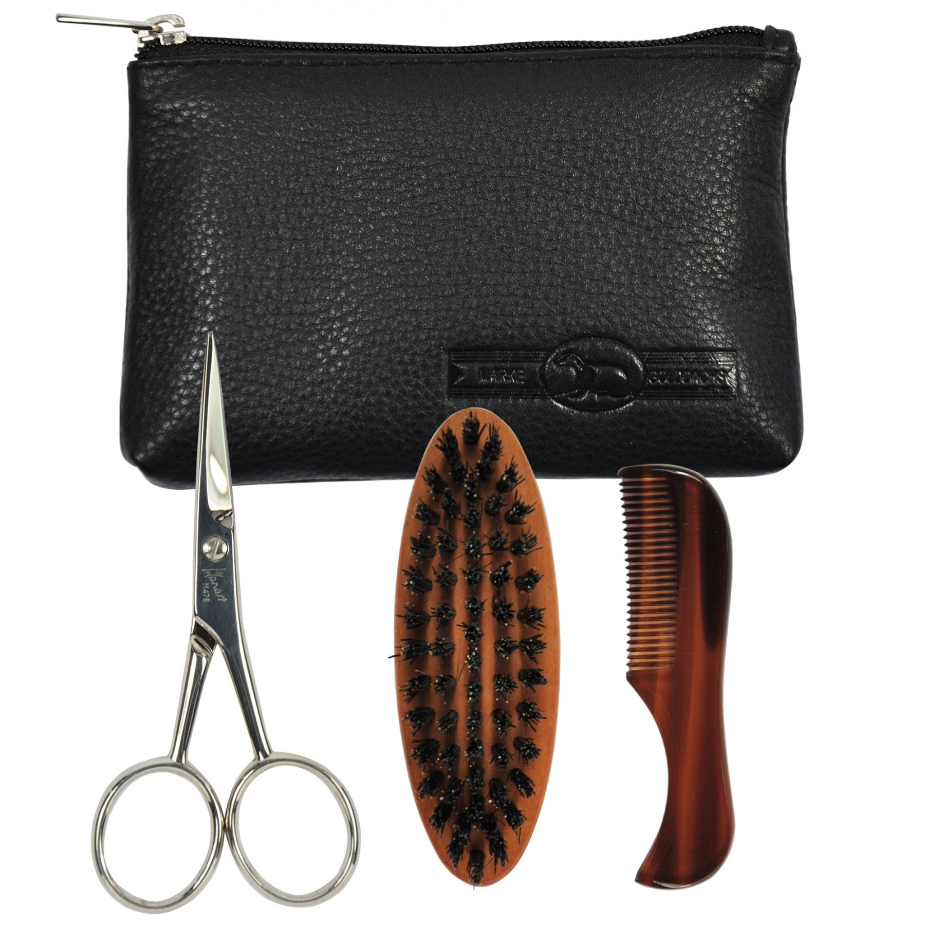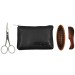 Bart-Set, im Rindlederetui, schwarz, 3-tlg. Bestückung: 1 Bartkamm, 1 Bartbürste und 1 Bartschere