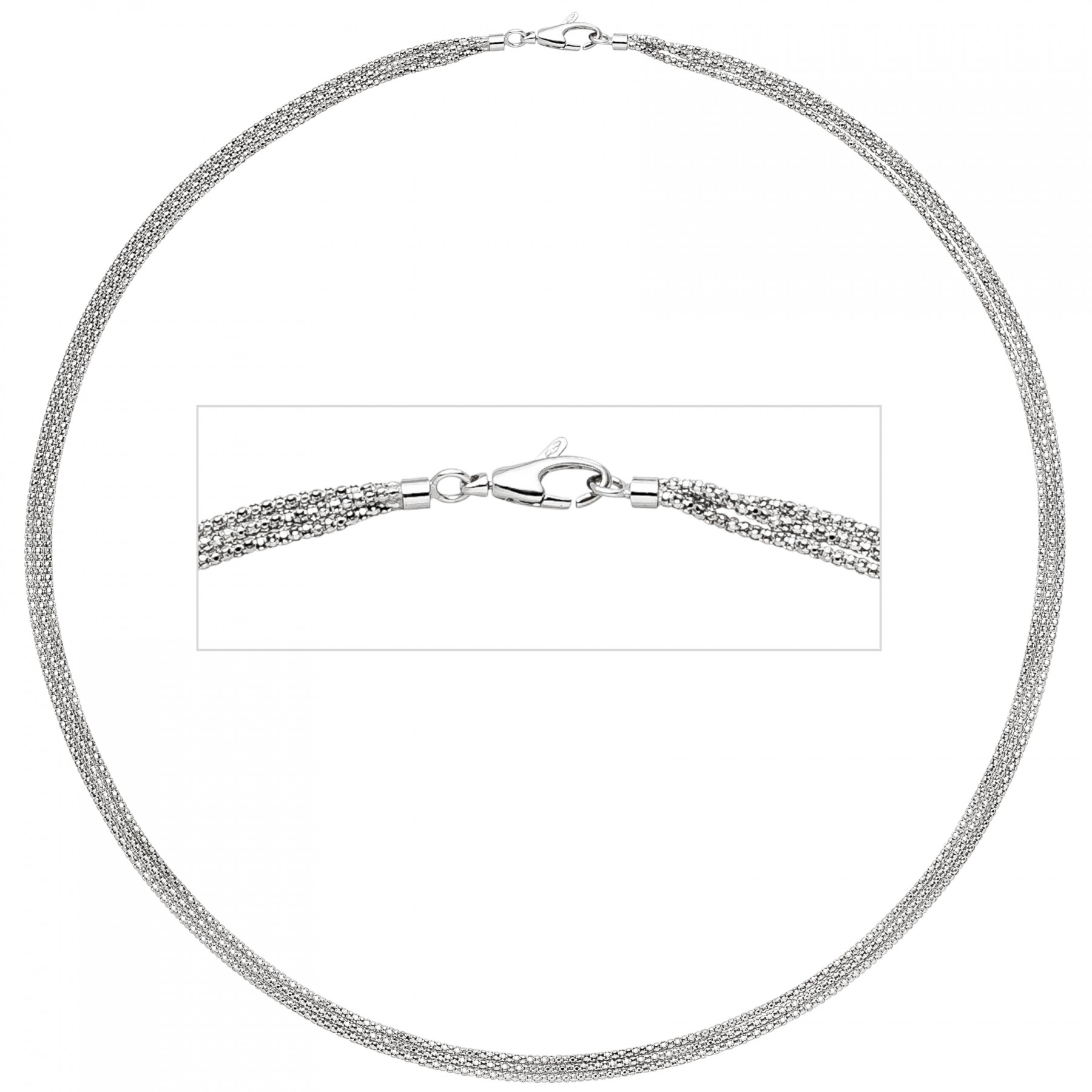 Halskette Popcorn Kette 3-reihig 750 Weißgold 45cm Goldkette Karabiner