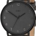 Herrenarmbanduhr, JOBO-Quarz-Analog, Gehäuse und Boden Edelstahl, schwarz plattiert, Mineralglas, Zentralsekunde, graues Zifferblatt, arabische Zahlen, wassergeschützt bis 3 ATM, graues Lederband mit Dornschließe, Miyota-Werk