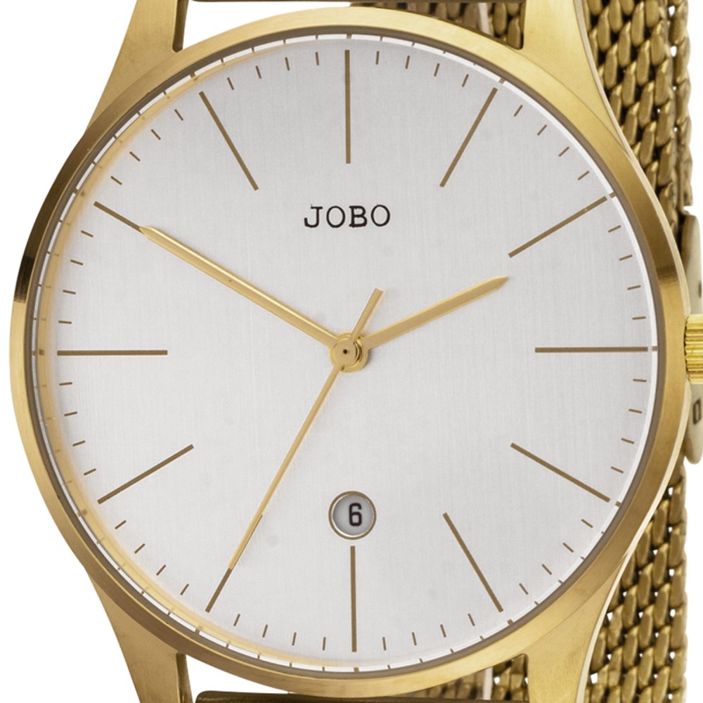 Hersteller Nr. 52198 EAN 4053258513354 Material Edelstahl Produktgruppe Armbanduhr Hersteller JOBO Verschluss Klappverschluss Stegbreite 20mm Uhrwerk Quarz (Batterie) Besonderheiten Datum/Kalender Wasserdicht 3 ATM - Bewertungen