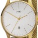 Herren Armbanduhr Quarz Analog Edelstahl vergoldet Datum Herrenuhr