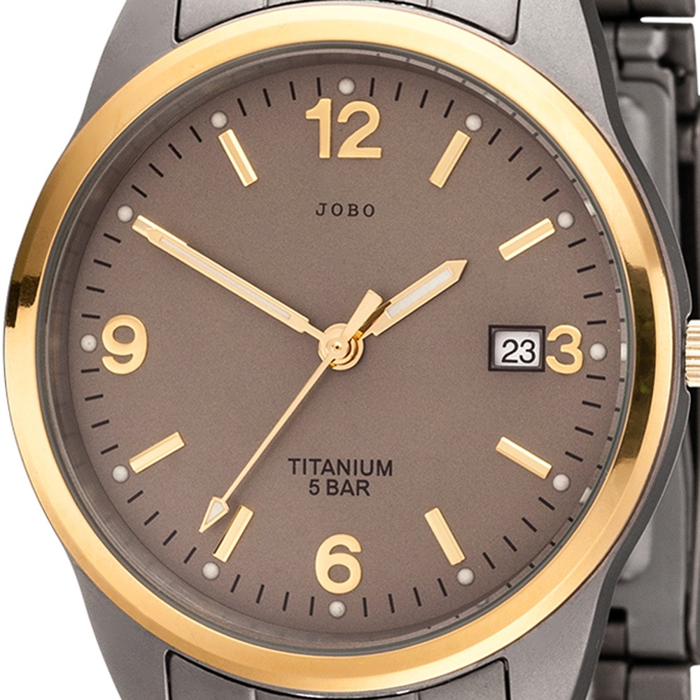 Weiterführende Links zu "JOBO Herren Armbanduhr Quarz Analog Titan bicolor vergoldet Herrenuhr mit Datum"