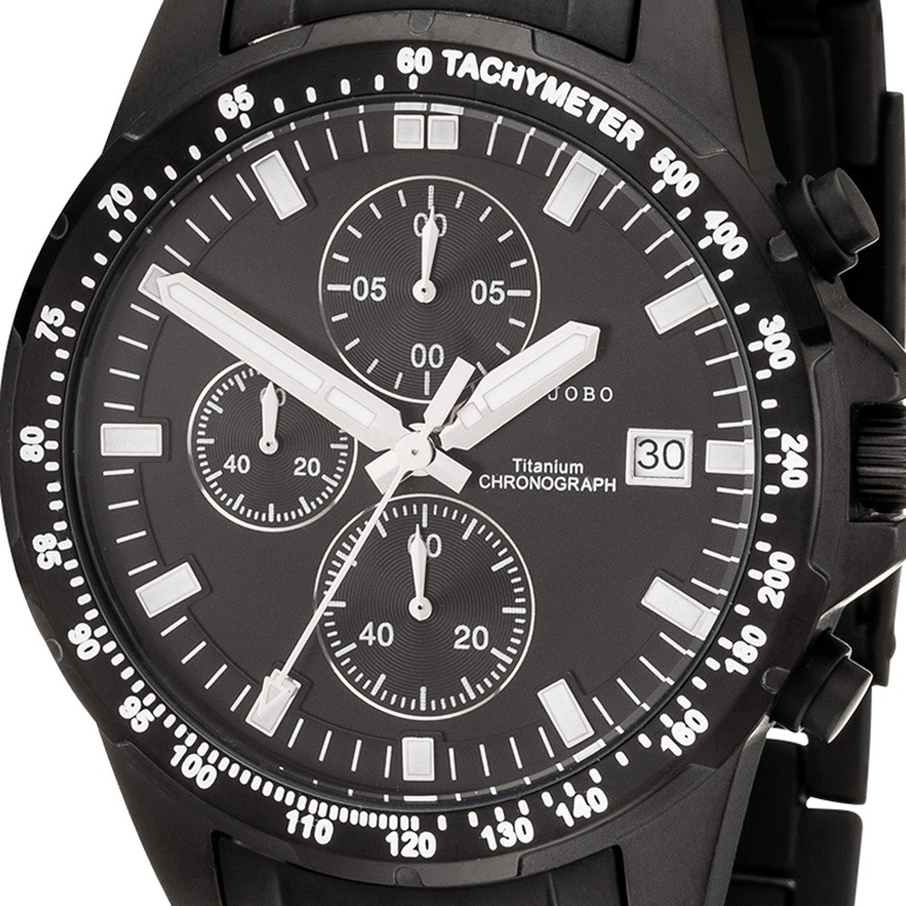 Weiterführende Links zu "JOBO Herren Armbanduhr Quarz Chronograph Titan schwarz Herrenuhr mit Datum"