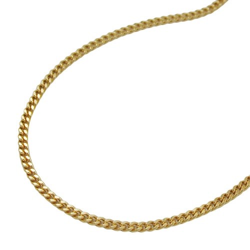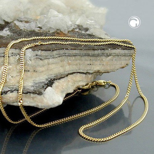 Dünne, stabile Goldkette im Flachpanzer-Muster, 1,4mm breit, zweifach diamantiert (geschliffen) in 50cm Länge in 585er Gold (14 Karat). Die Panzerkette zählt zu den Standardkettenmustern und ist die passende Kette für kleine bis mittelgroße Gold-Anhänger. Die hochwertige Verarbeitung der Goldenen Anhängerkette bürgt für lange Haltbarkeit und Freude und gehört zur Grundausstattung für alle Menschen, die Goldschmuck mögen!