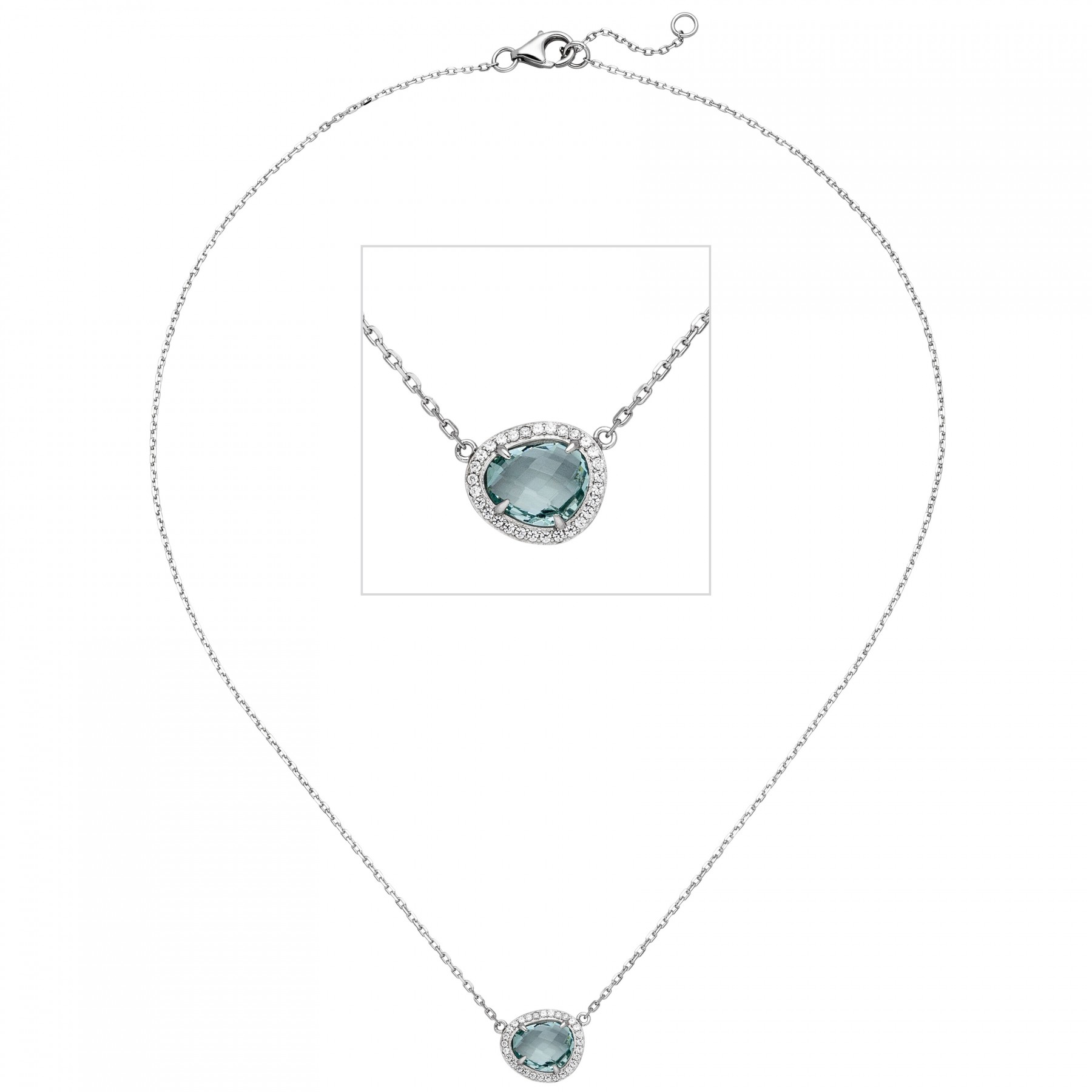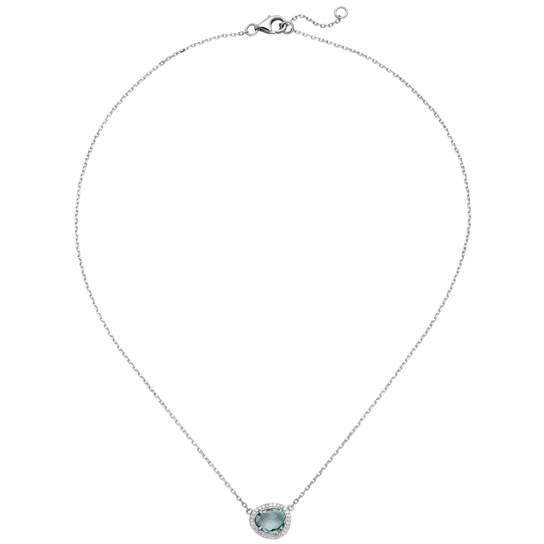 Kette mit Anhänger 925 Silber 1 Glasstein blau hellblau 29 Zirkonia 45cm