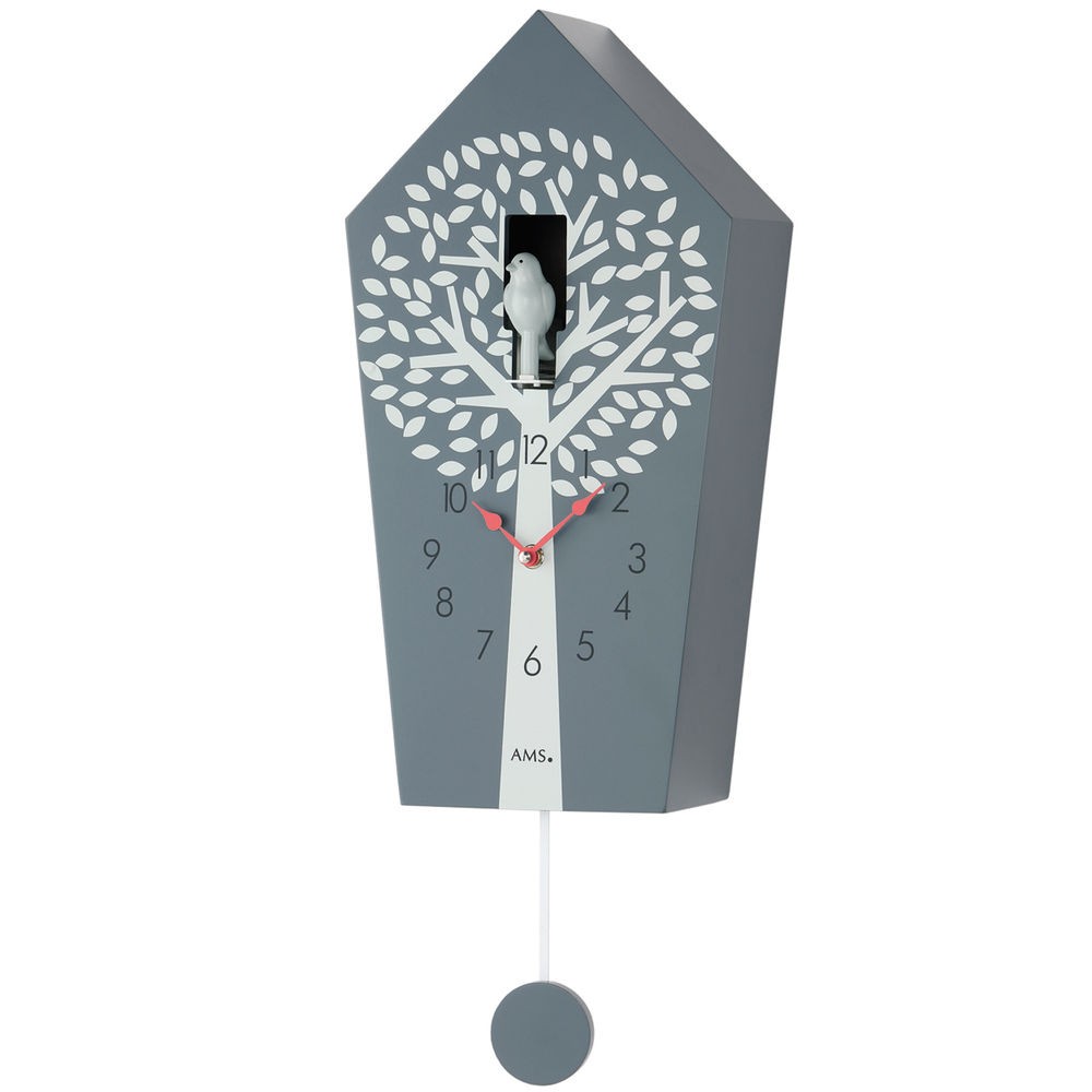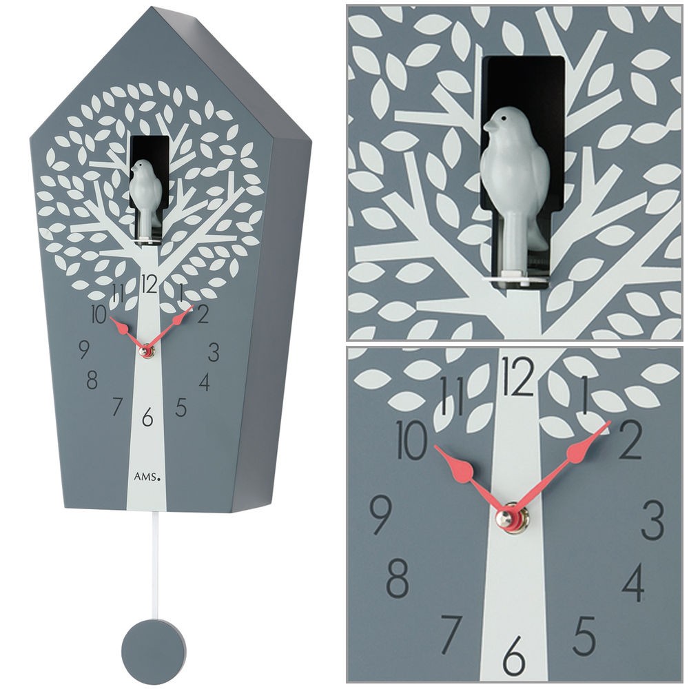 Weiterführende Links zu "Kuckucksuhr Wanduhr Quarz mit Pendel rot grau mit Baum Muster Pendeluhr"