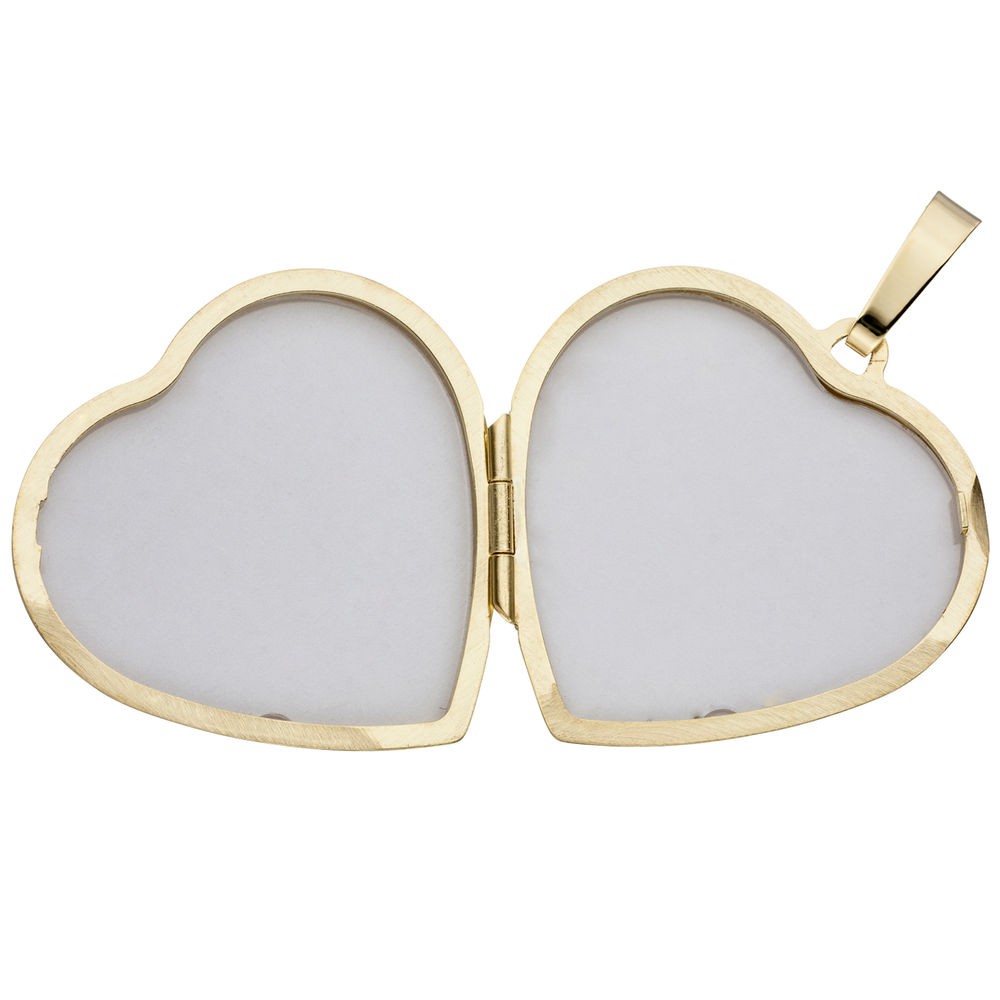 Medaillon Herz für 2 Fotos 333 Gold Gelbgold matt Anhänger zum ÖffnenHerzförmiges Medaillon für bis zu 2 Fotos aus 8 Karat (333) Gelbgold- teilmattiert