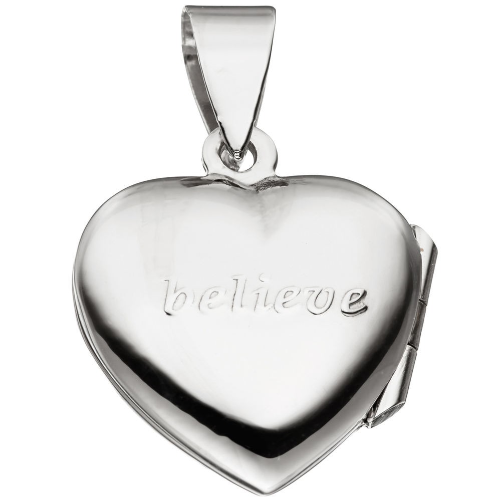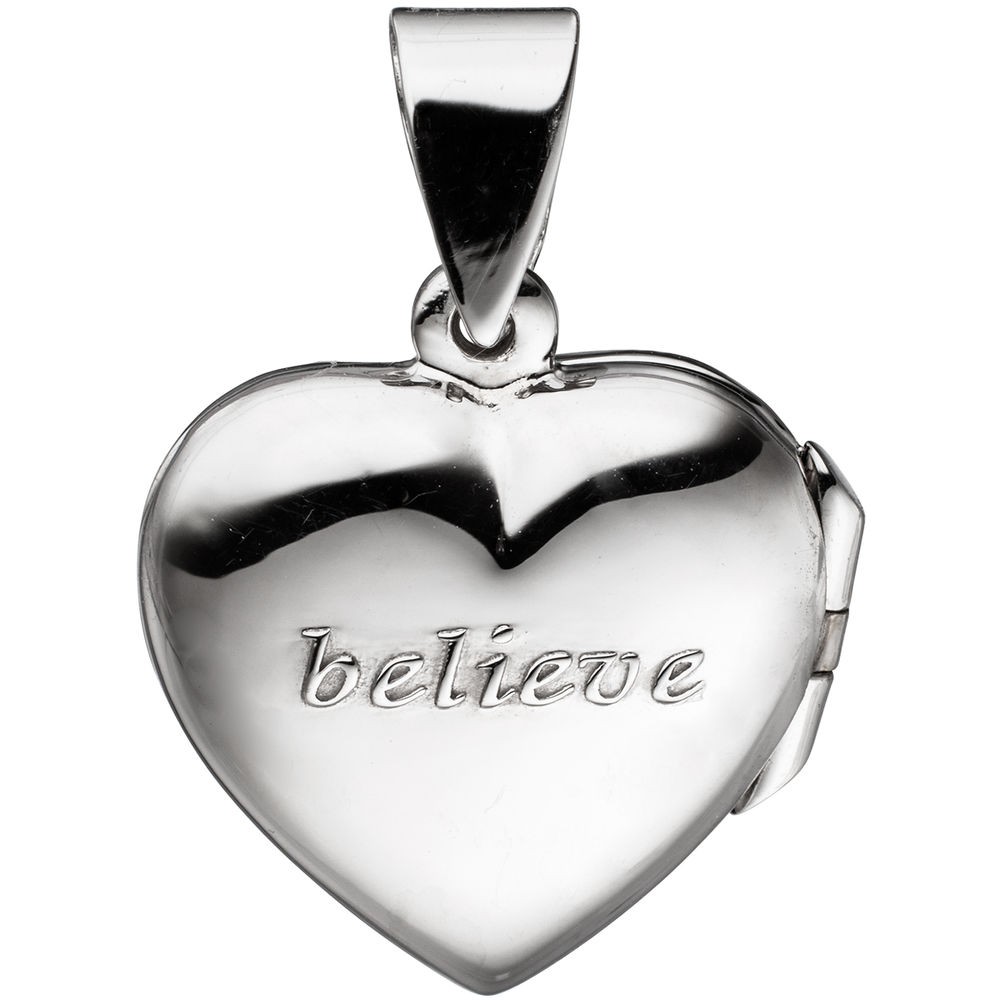 Medaillon Herz für 2 Fotos 925 Sterling Silber Anhänger zum ÖffnenHerzförmiges Medaillon für bis zu 2 Fotos aus 925 Sterlingsilber- rhodiniert- Rückseite mit Prägung believe