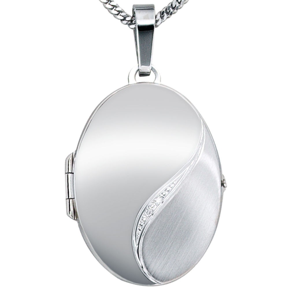 Weiterführende Links zu "Medaillon oval 585 Weißgold mattiert 2 Diamanten Anhänger zum Öffnen"