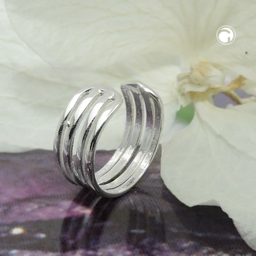 Neckisches Accessoire für die Ohren aus 925/- Sterlingsilber, 11x7mm groß, gearbeitet in hochwertiger Juwelierqualität. Diese trendige Ohrmanschette mit der vierfachen Ringschiene hält auch ohne Ohrsteckerloch, in dem sie einfach am äußeren Rand des Ohrs aufgeschoben und - je nach Beschaffenheit der oberen Ohrmuschel - leicht zusammengedrückt wird. Unisex tragbar fällt die Ohrklemme gut bei zurückgekämmten oder kurzen Haaren auf. Da kein Ohrlochstechen notwendig ist, zählt diese Art von Ohrschmuck auch zum Fake Piercing. Single-Ohrschmuck, Verkauf nur als Einzelstück, da diese Ohrringe meistens nur auf einer Seite getragen werden.