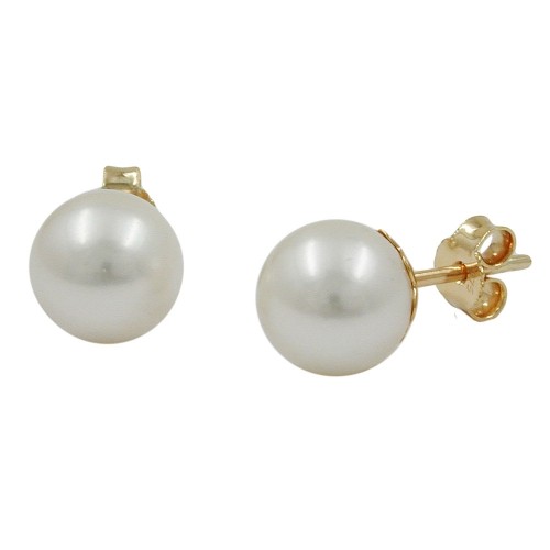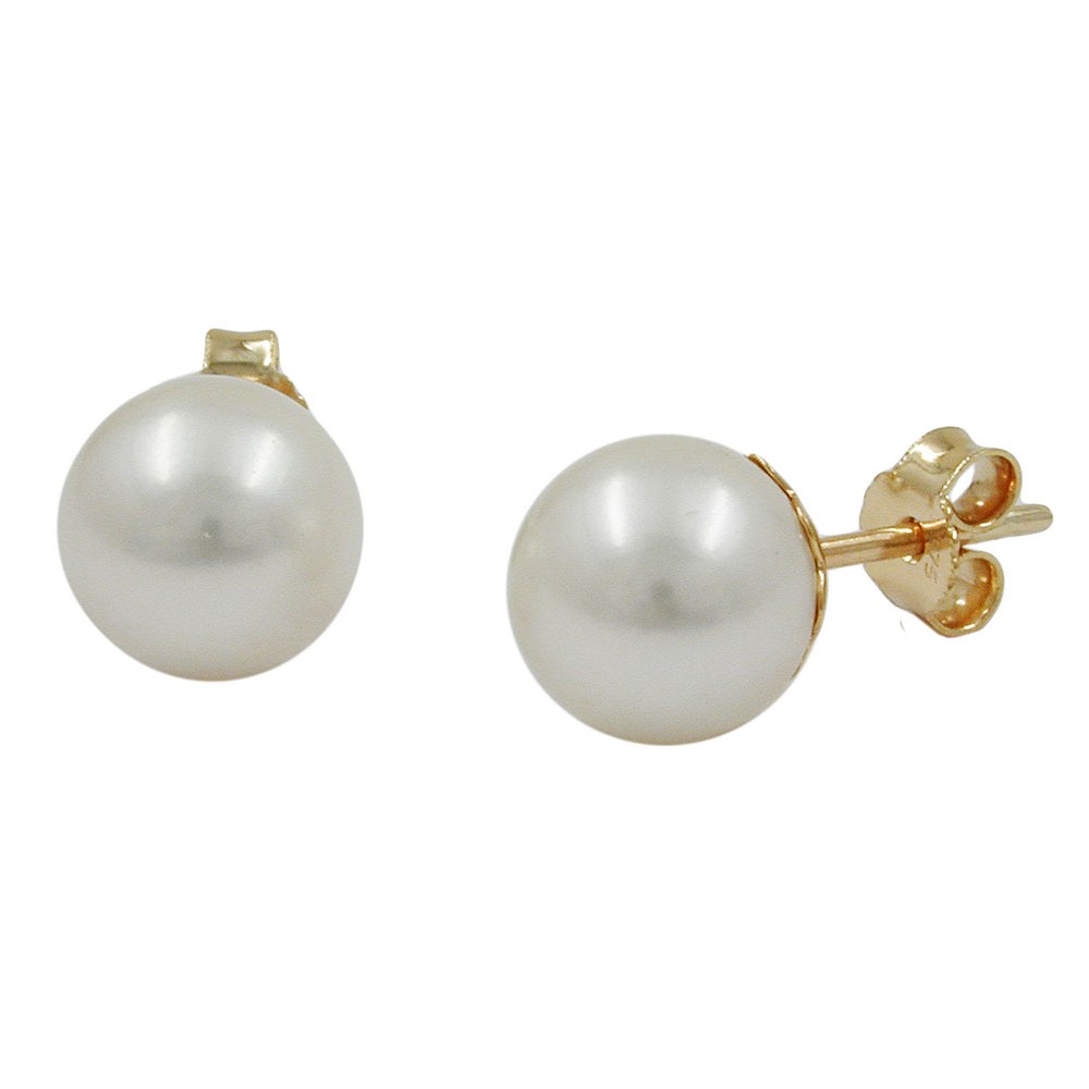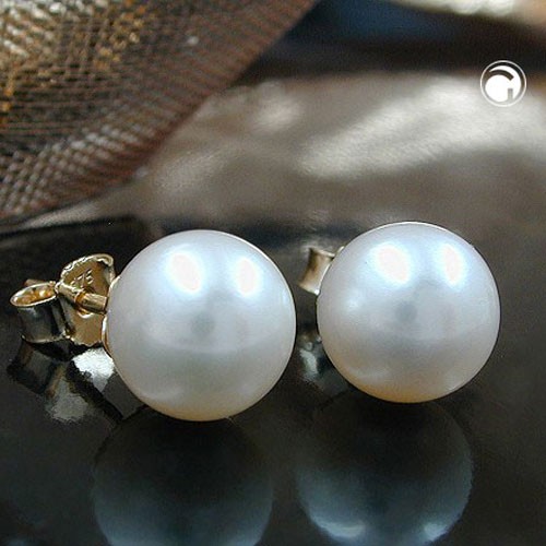 Klassische Perlenohrringe mit einer ca. 8mm großen, runden Süßwasserzuchtperle in 375er Gelbgold (9 Karat)"