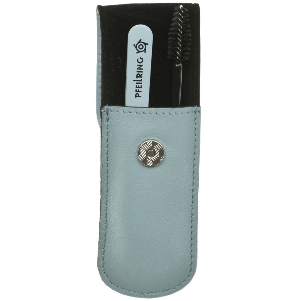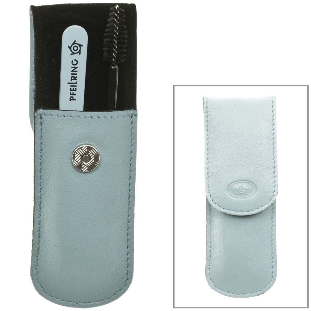 Pfeilring Taschenetui, Nappaleder hellblau, 2-teilige BestückungPfeilring-Taschenetui- Nappaleder hellblau- 2-teilige Bestückung: 1 Pinzette hellblau- 1 Mascarabürste schwarz