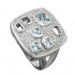 Dieser wunderschöne extravagante Damenring in Sterling Silber 925 mit Zirkonias, gearbeitet in hochwertiger Juwelierqualität, Ringgröße 54 (Umfang) 17,2 (Durchmesser), ist ein echter Blickfang! In dem 18x18mm großen, abgerundeten Viereck mit hervorgehobenen Rahmen befinden sich unregelmäßig kleine und große Vierecke, 4 sind mit hellblau aqua-farbenen Zirkonias gefüllt, 3 sind offen durchsichtig, die Flächen dazwischen sind komplett mit vielen kleinen weißen funkelnden Zirkonias ausgefüllt, die mittels micro pavé bzw. micro settings gefasst wurden. Die schmale Ringschiene innen ist 1,5mm breit. Für eine langanhaltende Freude an diesem Schmuckstück wurde die Oberfläche anlaufgeschützt rhodiniert.