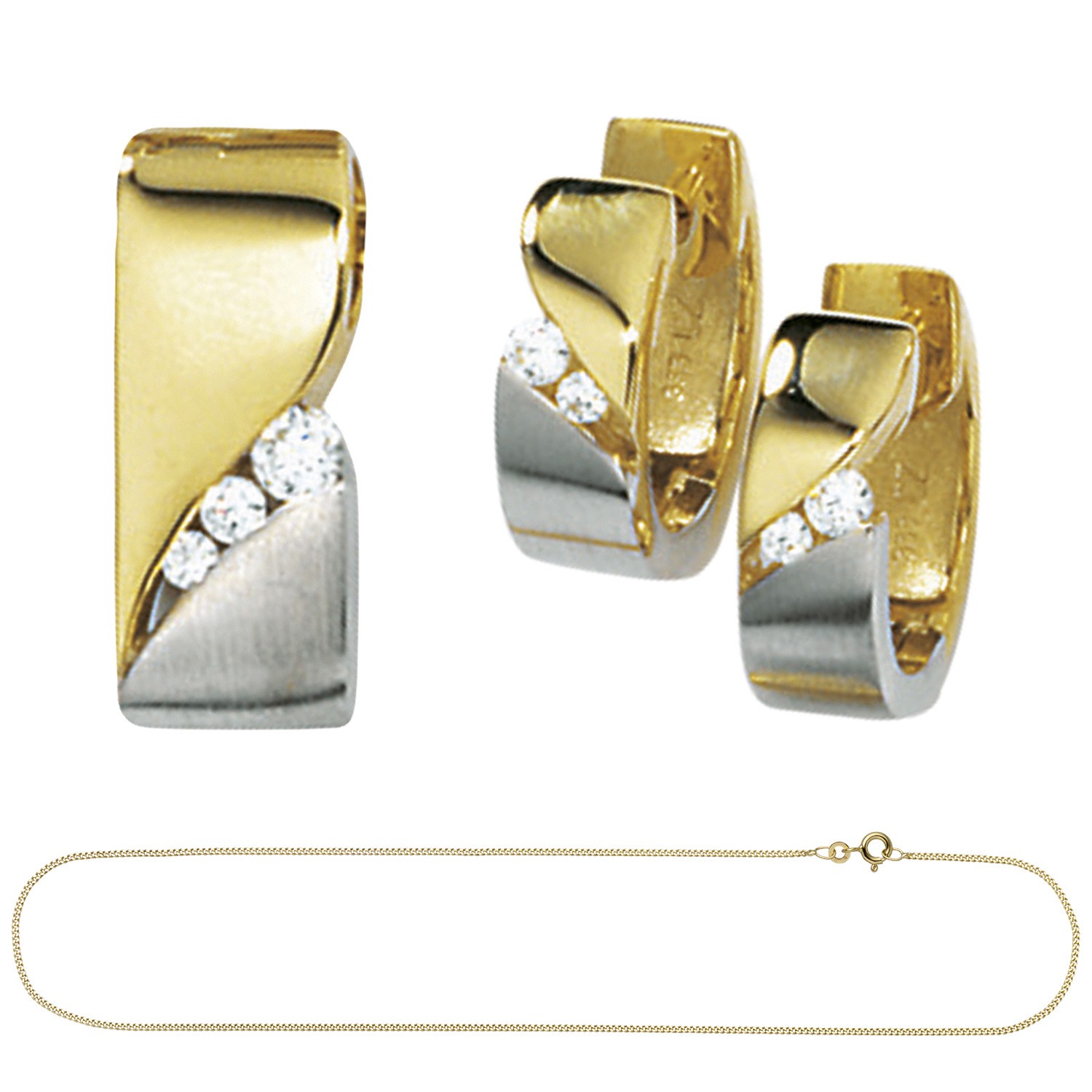 Weiterführende Links zu "Schmuck-Set 333 Gelbgold bicolor 7 Zirkonia Ohrringe und Kette 42cm"