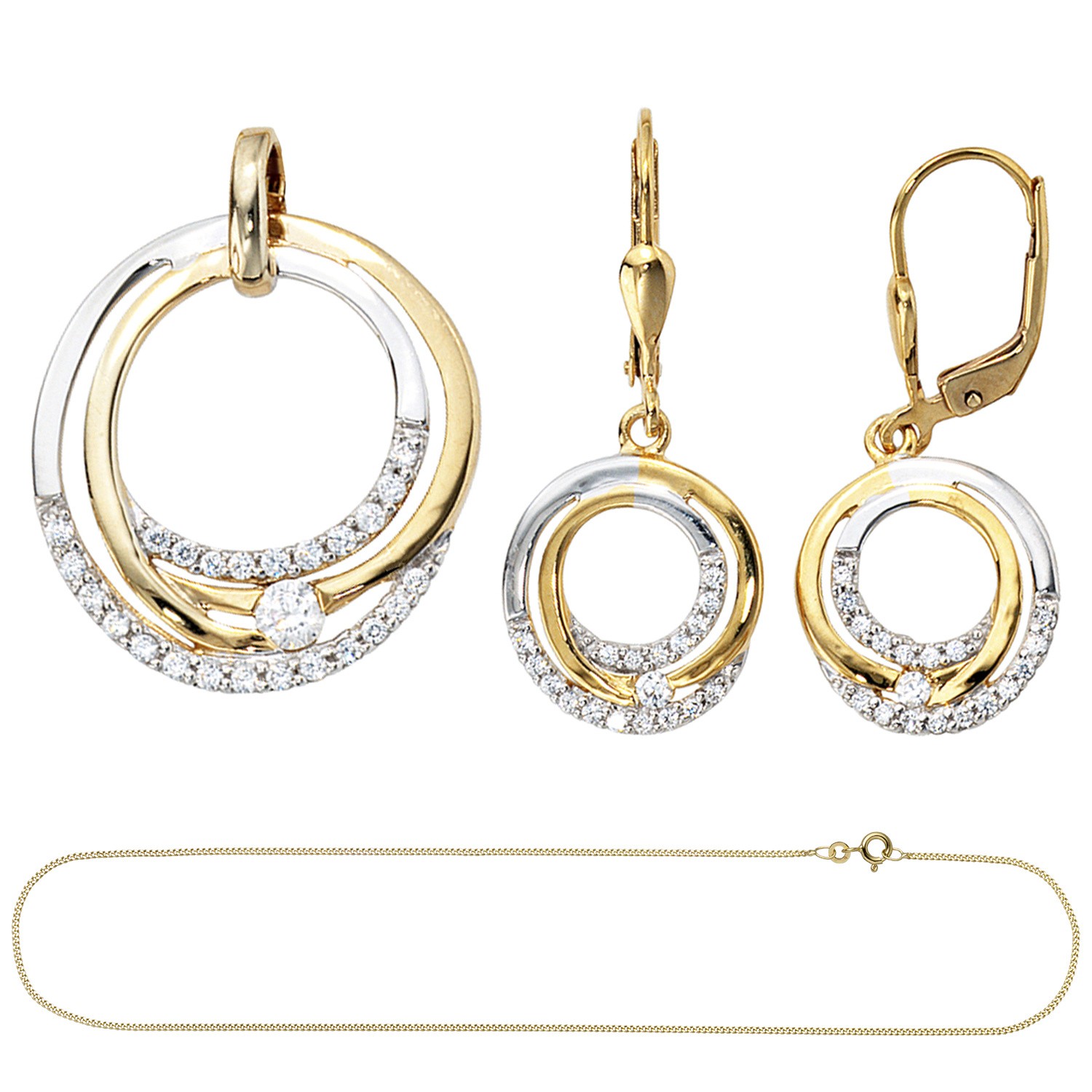 Weiterführende Links zu "Schmuck-Set 333 Gelbgold bicolor mit Zirkonia Ohrringe und Kette 42cm"