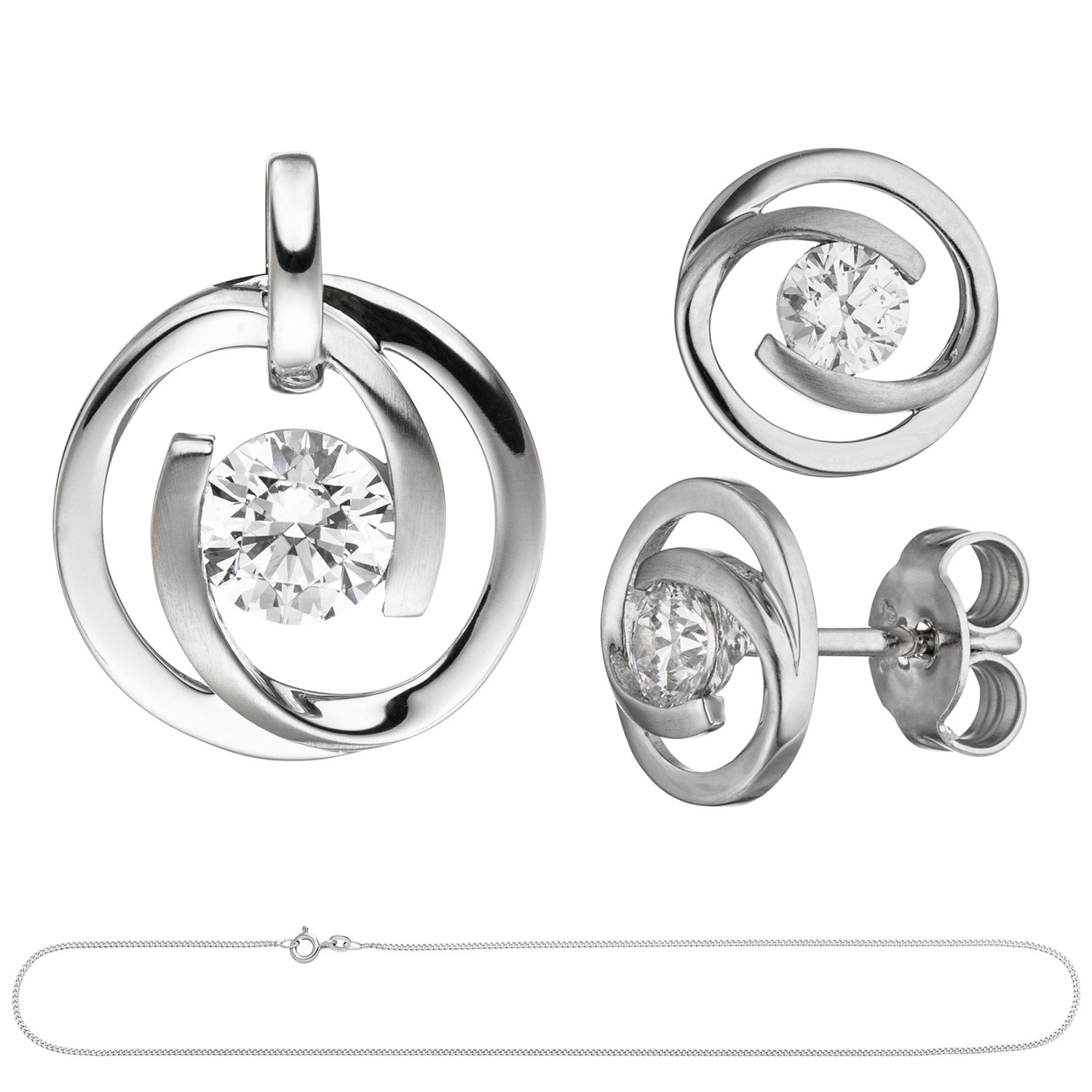 Weiterführende Links zu "Schmuck-Set 333 Weißgold 3 Zirkonia Ohrringe Anhänger und Kette 42cm"