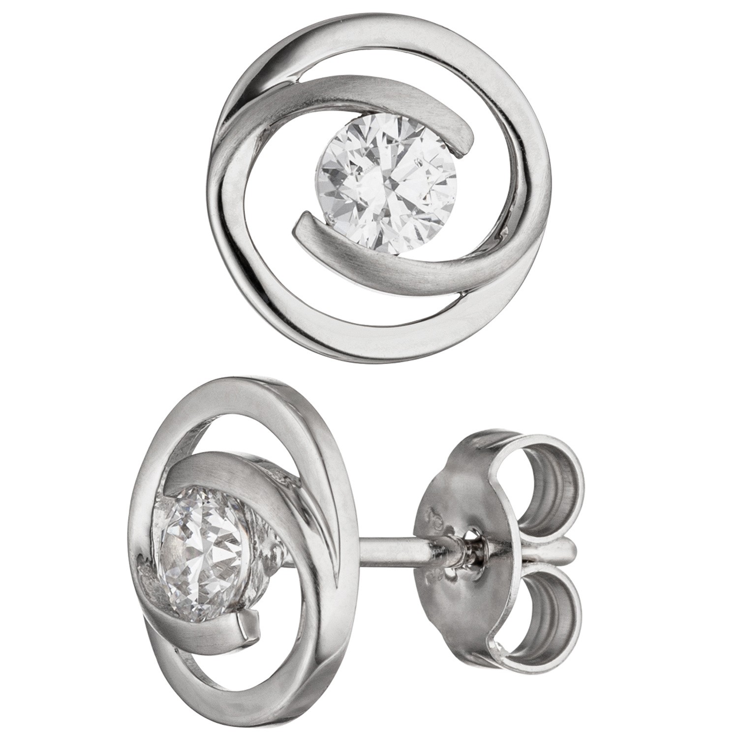 1 Paar Ohrstecker aus 8 Karat (333) Weißgold, teilmattiert, mit 2 Zirkonia, Durchmesser ca. 9,3 mm, Gewicht ca. 1,5 g