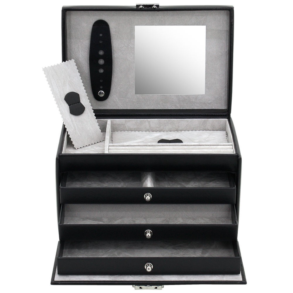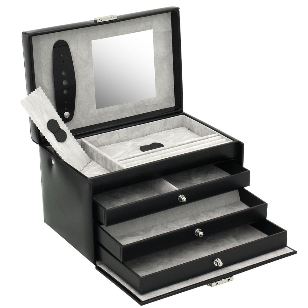 Weiterführende Links zu "Schmuckkoffer schwarz Spiegel Schubladen Ringleiste"