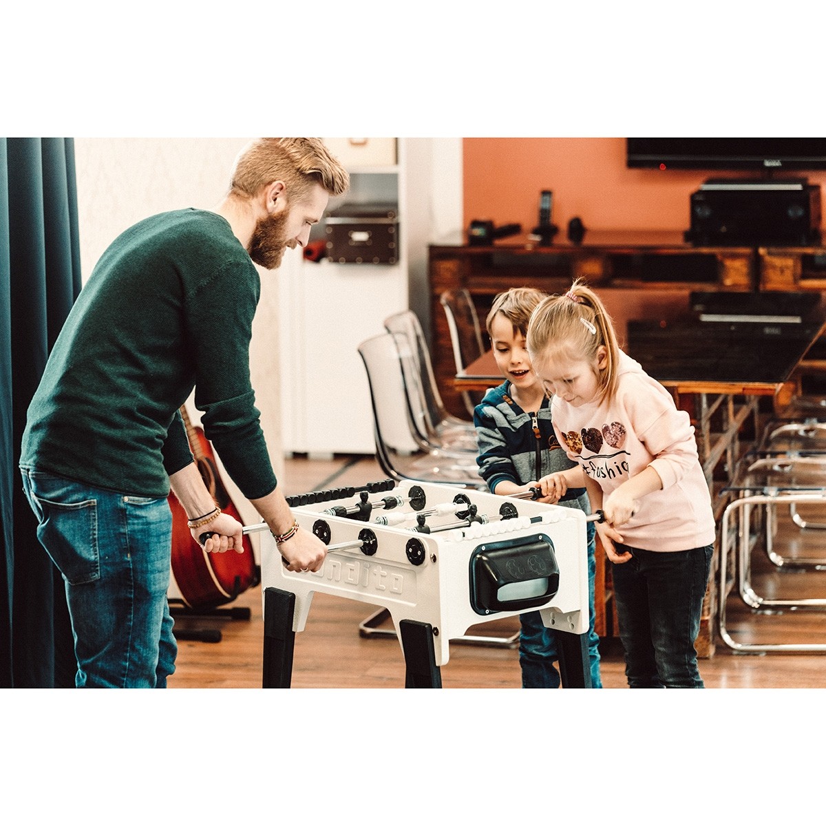 Riesen Spaß macht das Spiel auf dem kleinen Fußballkicker Modell Fun aus dem Hause Bandito. Dieser Kicker wurde zum Spiel für zwei Personen entwickelt - also Mann gegen Mann!