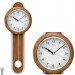 Funk-Wanduhr mit Pendel, Holzgehäuse Eiche teilweise silberfarben lackiert, Frontreif Aluminium, Mineralglas, weißes Zifferblatt, Strichskala, arabische Zahlen und Zeiger, mit Sekundenzeiger
