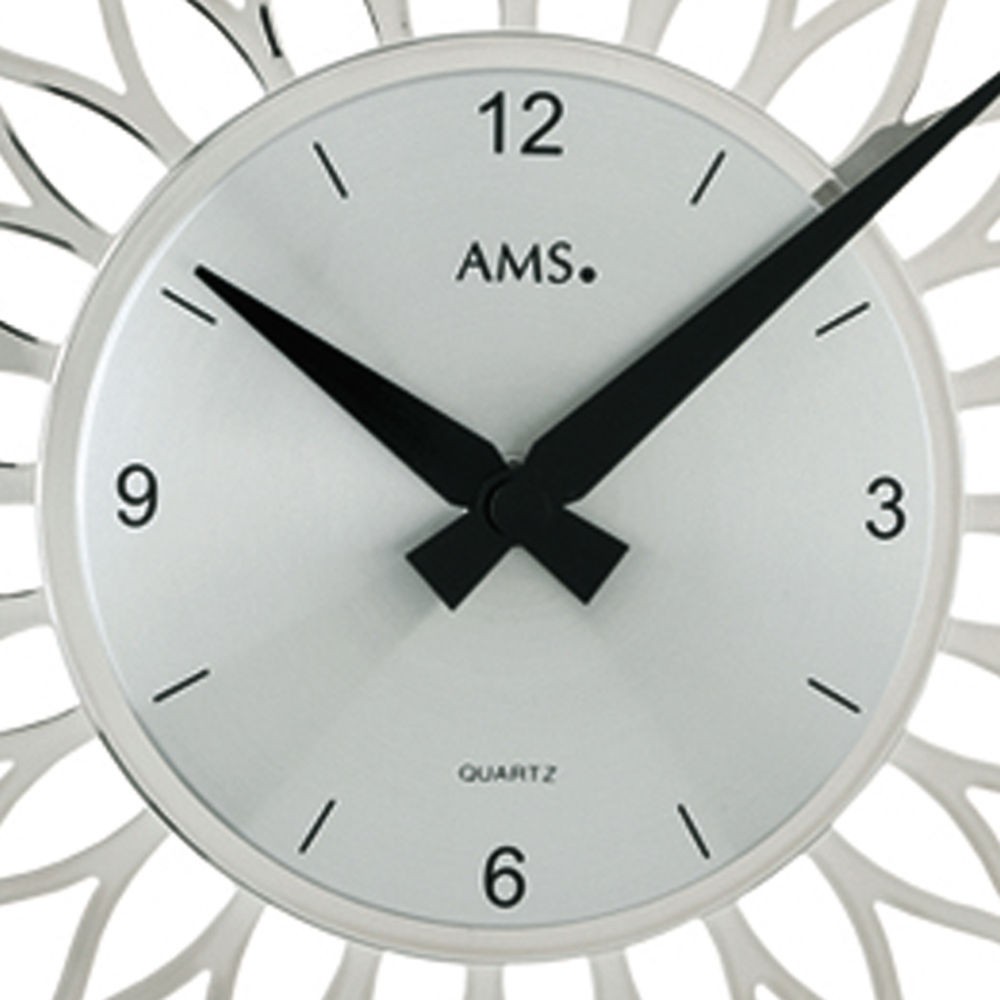 Weiterführende Links zu "Wanduhr Quarz analog Design BLÜTE silbern"