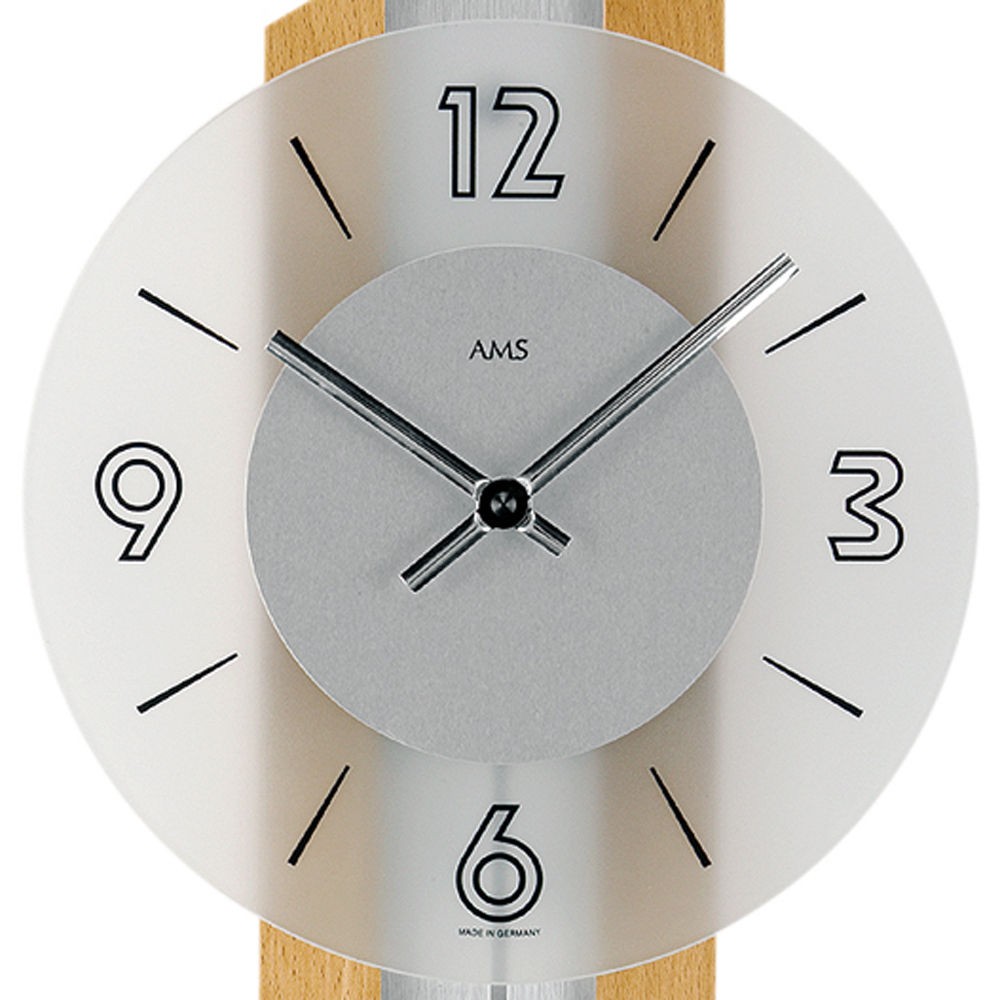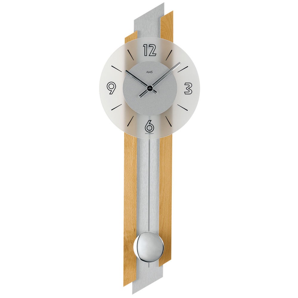 Weiterführende Links zu "Wanduhr Quarz analog silbern Holz Buche massiv Pendeluhr mit Glas"