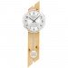 Quarz-Wanduhr mit Pendel, Holzrückwand Massivholz in Zirbe-Optik mit Aluminium-Einlage kombiniert, Aluminium-Zifferblatt auf Mineralglas, Strichskala, arabische Zahlen und Zeiger schwarz